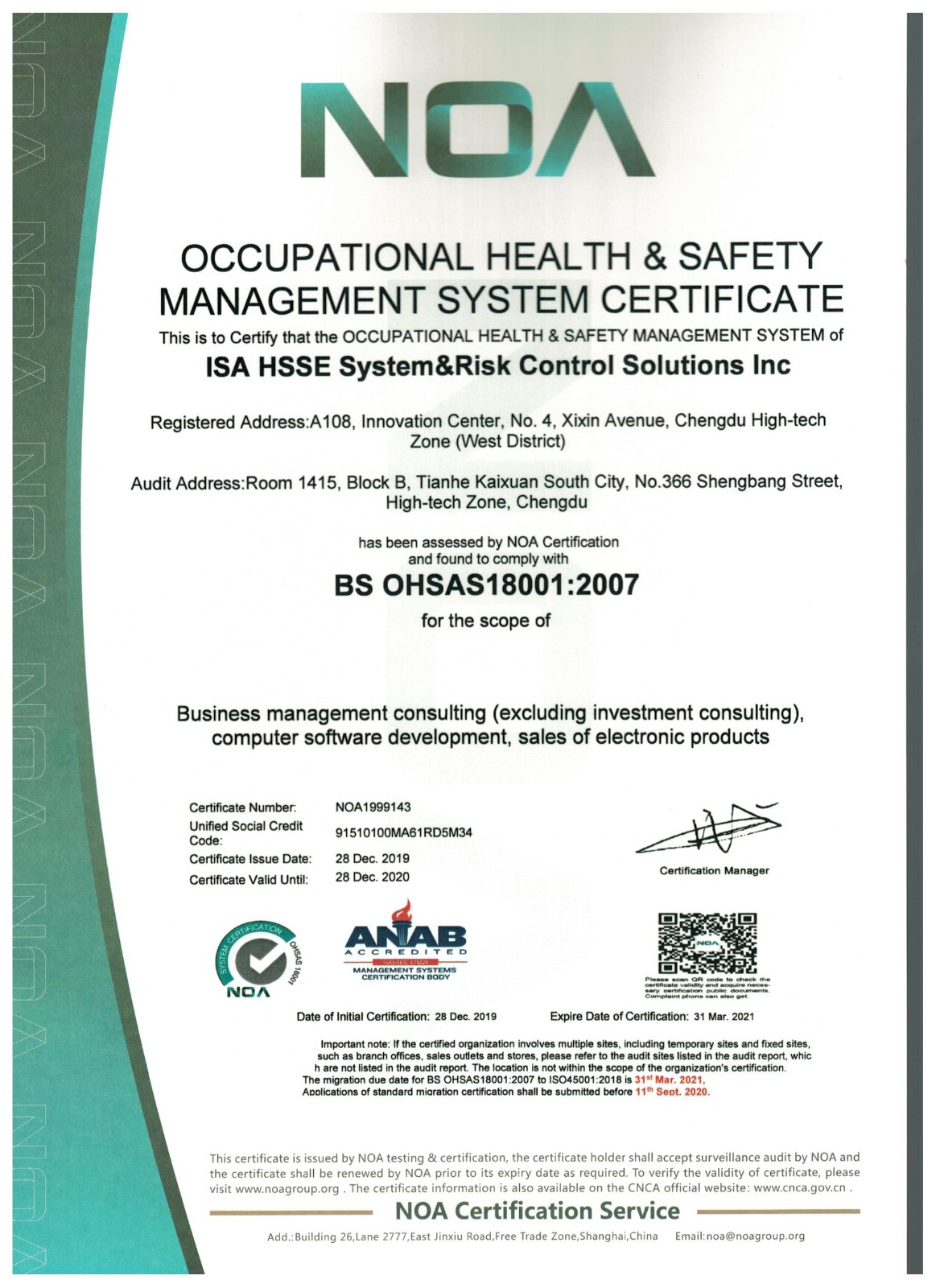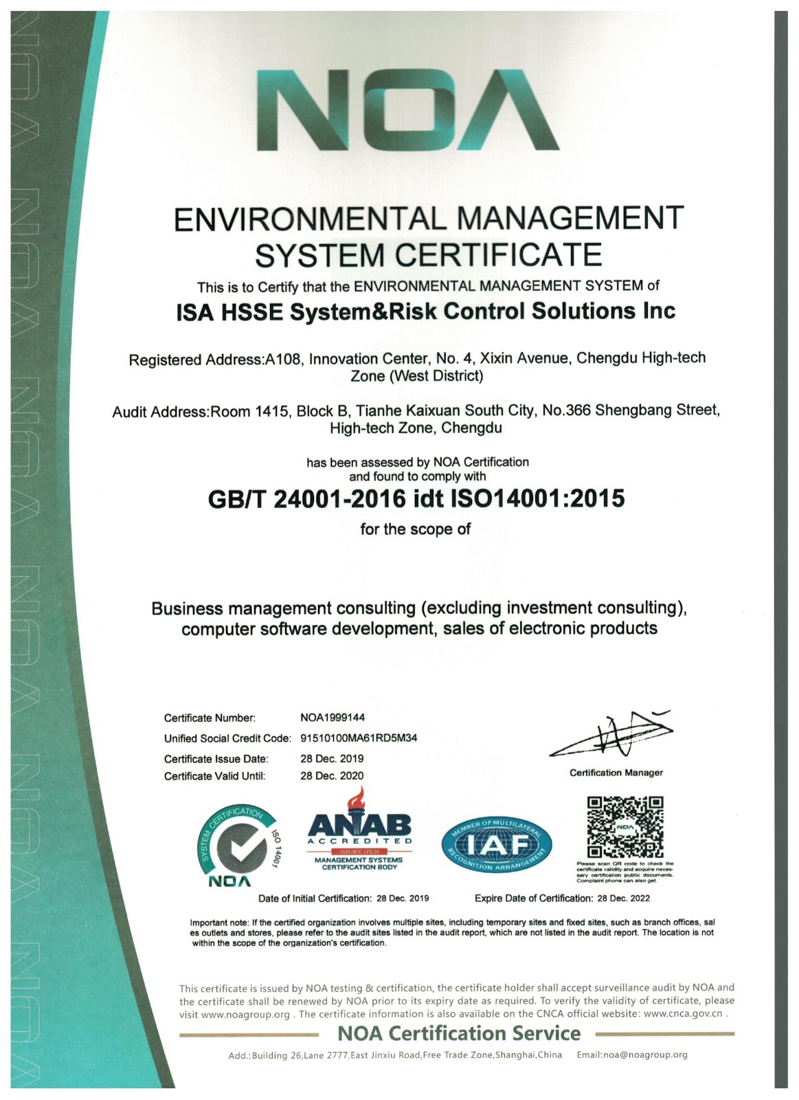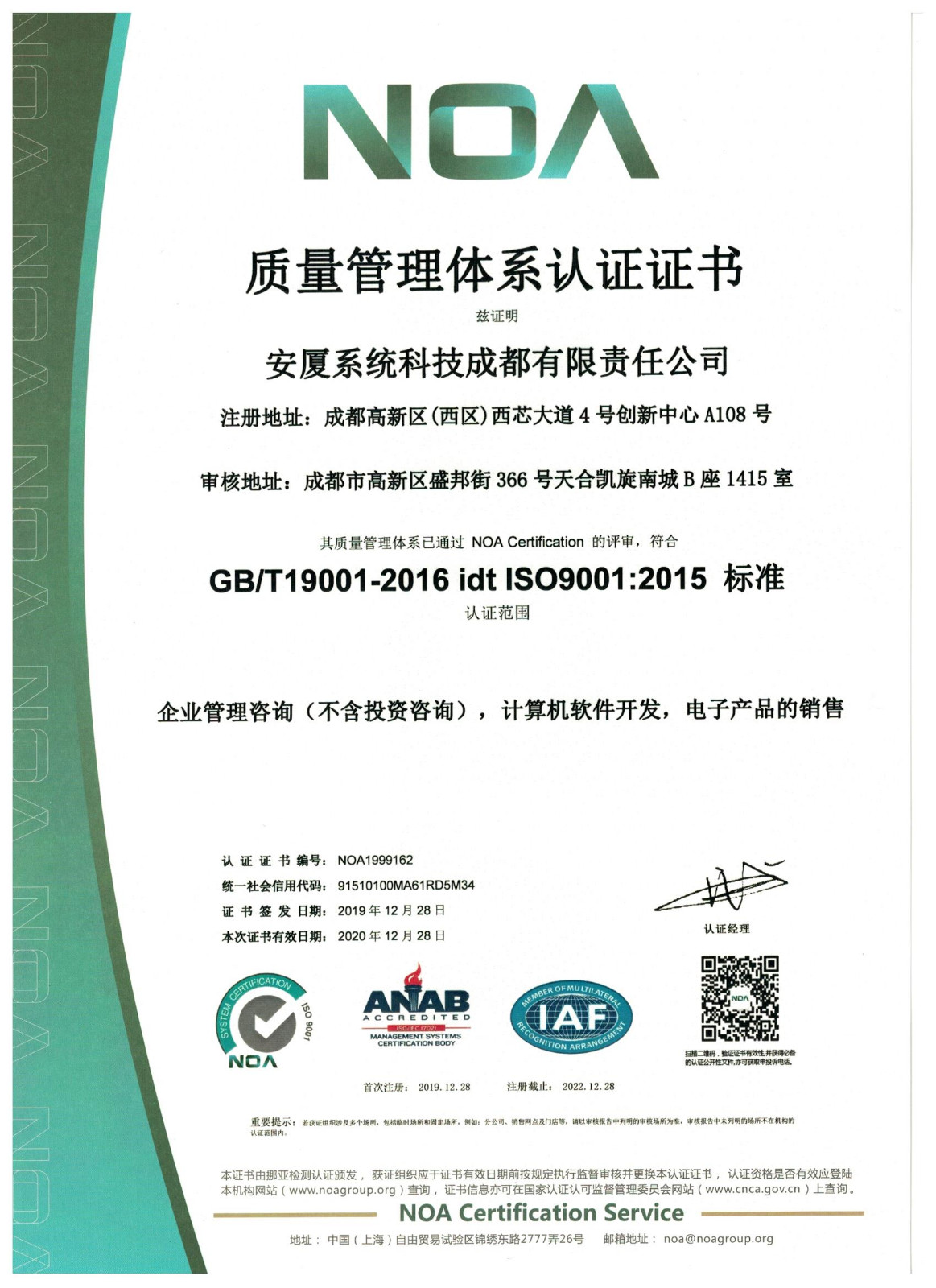 安廈系統科技成都有限責任公司成立于2015年,專注于提供風險管理整體咨詢及技術服務,業務涵蓋安全健康環保管理體系咨詢服務、安全生產標準化建設咨詢服務、應急預案咨詢服務、第三方安全監管服務、安全培訓服務、安全信息化開發服務。
