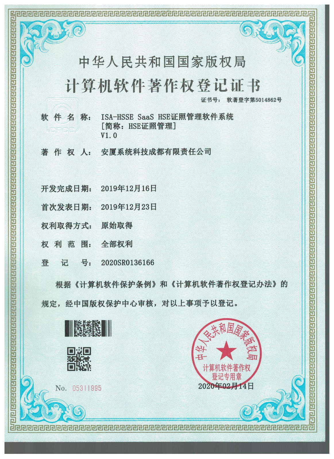 新加坡國立大學 IT 團隊和公司專家團隊經過深度研發,成功上線 HSSE SaaS 系統;同 時 研 發 出 量 化 安 全 風 險 評 估 數 學 模 型 、 量 化經濟損失評估模型、財產保險保費預測計算模型等。并獲得發明專利。