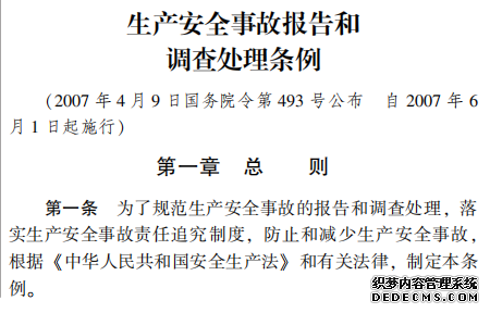 生產安全事故報告和 調查處理條例