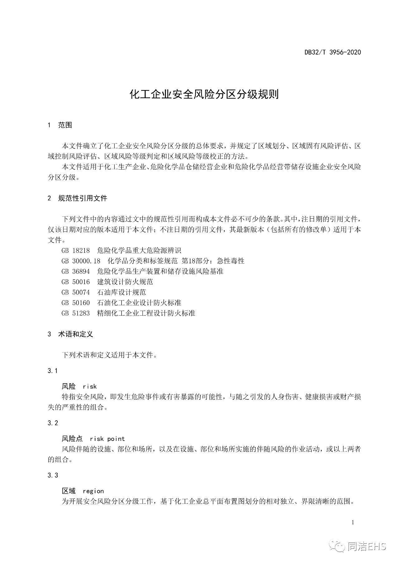 DB32T 3956-2020 化工企業安全風險分區分級規則(江蘇省標準),2020年1月15日起實施