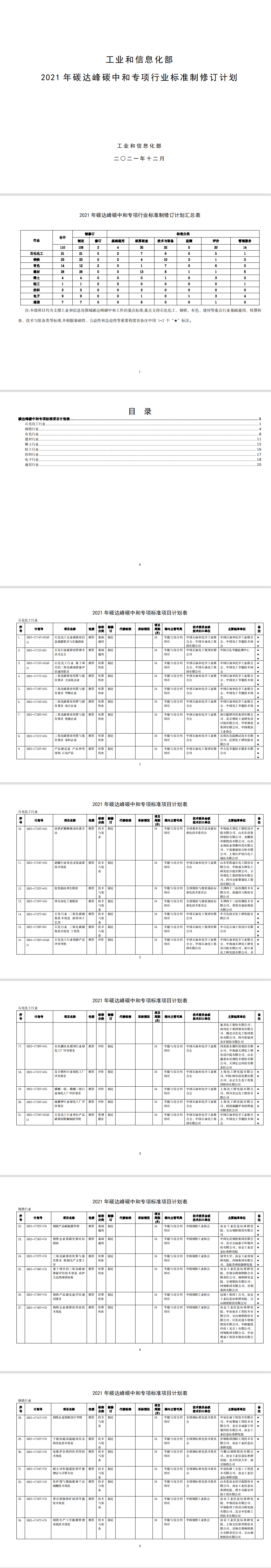 工業(yè)和信息化部辦公廳關(guān)于印發(fā)2021年碳達峰碳中和專項行業(yè)標(biāo)準(zhǔn)制修訂項目計劃的通知
