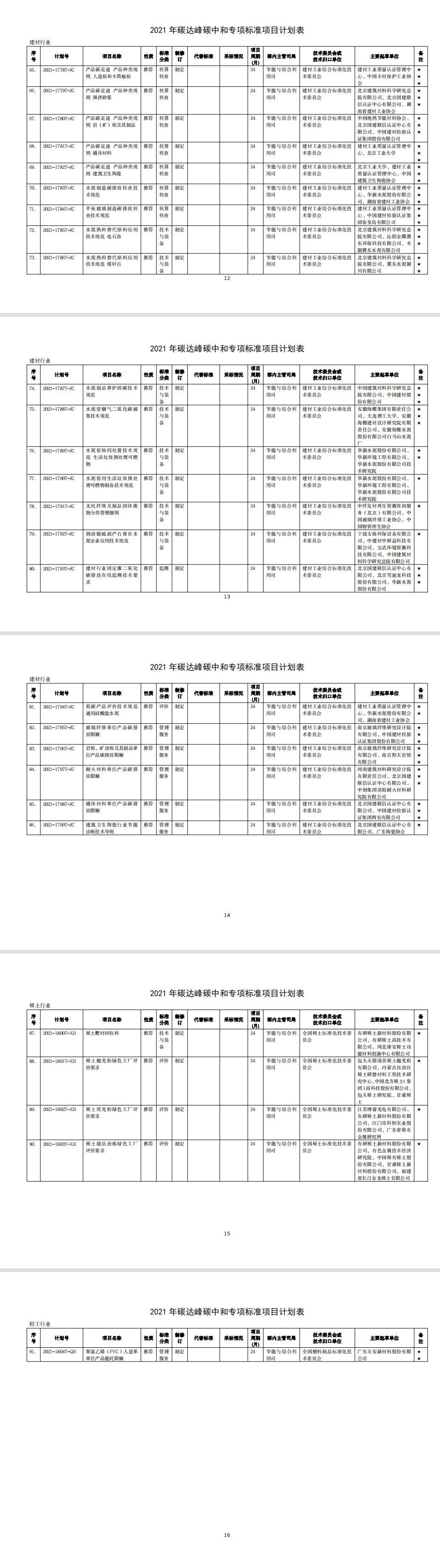 為發(fā)揮標(biāo)準(zhǔn)在推進工業(yè)領(lǐng)域碳達峰碳中和工作的引領(lǐng)和規(guī)范作用,我部編制完成了2021年碳達峰碳中和專項行業(yè)標(biāo)準(zhǔn)制修訂項目計劃。現(xiàn)印發(fā)給你們,請認真組織落實。有關(guān)事項通知如下: