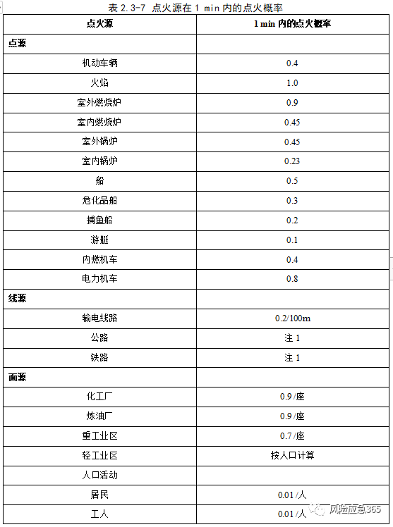 根據(jù)《化工企業(yè)定量風(fēng)險評價導(dǎo)則》(AQ/T 3046-2013)附錄G,立即點(diǎn)火概率與裝置類型、物質(zhì)種類及泄漏(釋放)有關(guān),固定裝置可燃物質(zhì)泄漏后,立即點(diǎn)火概率見下表。