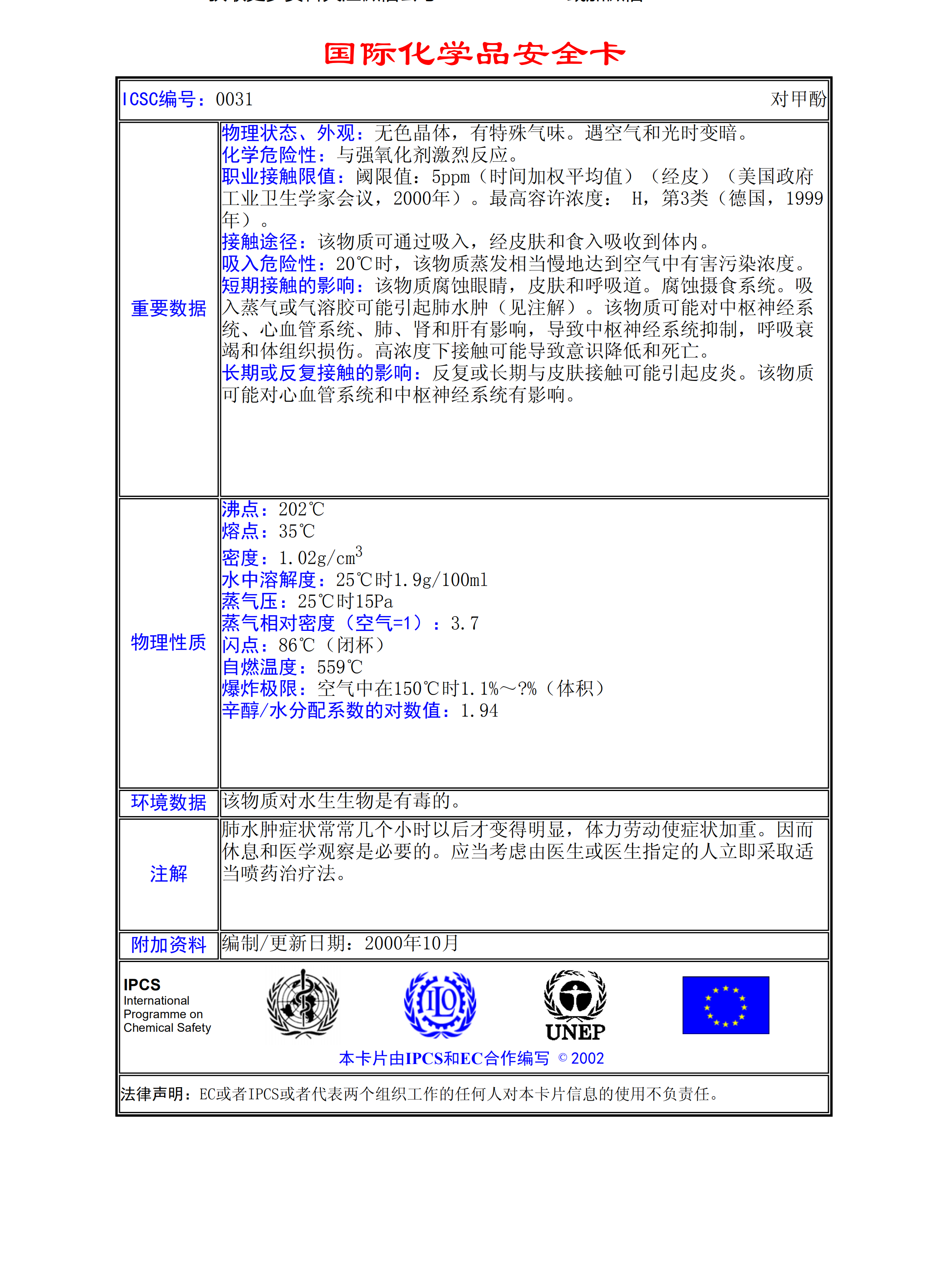 對甲酚MSDS