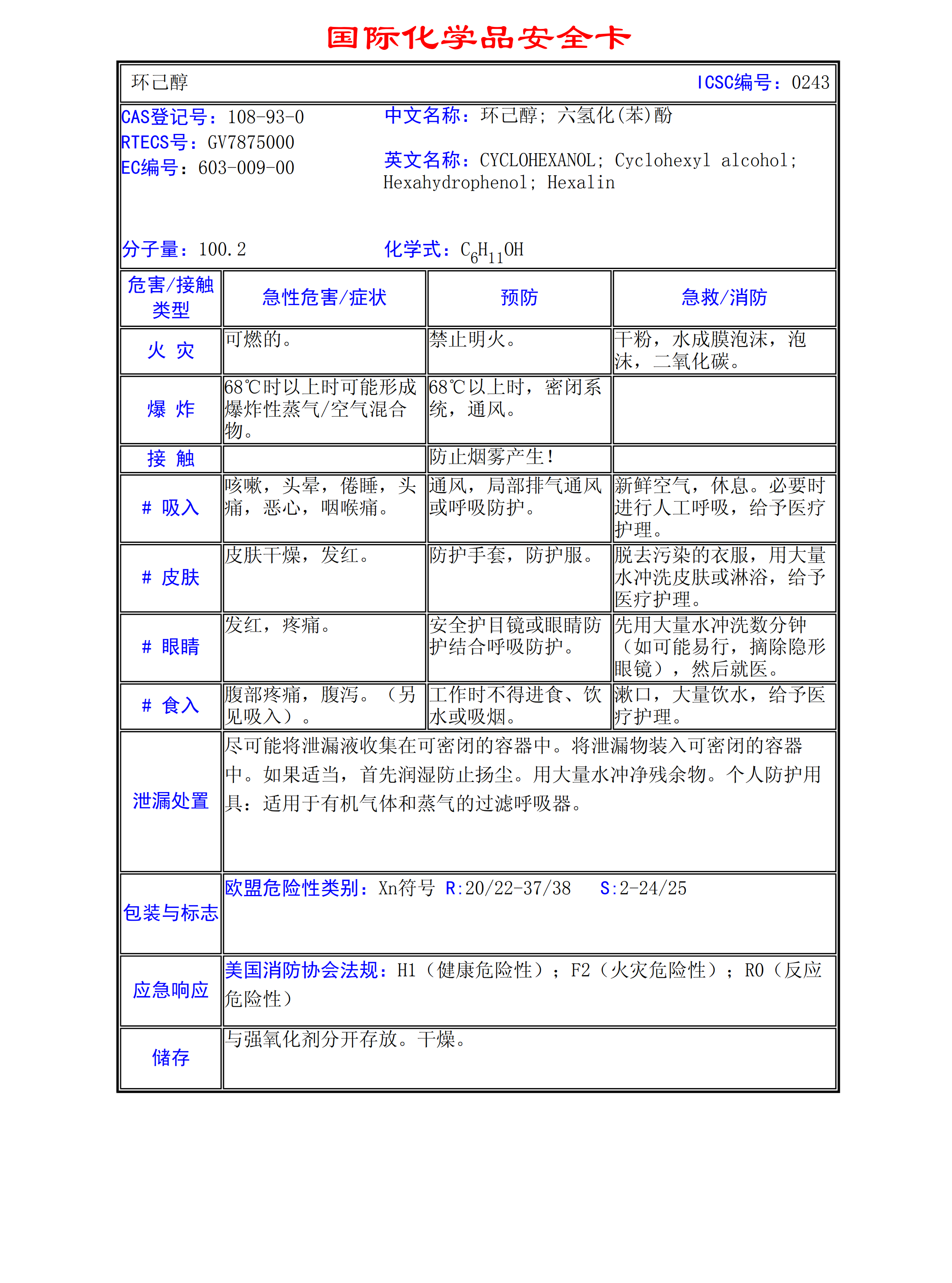環己醇MSDS