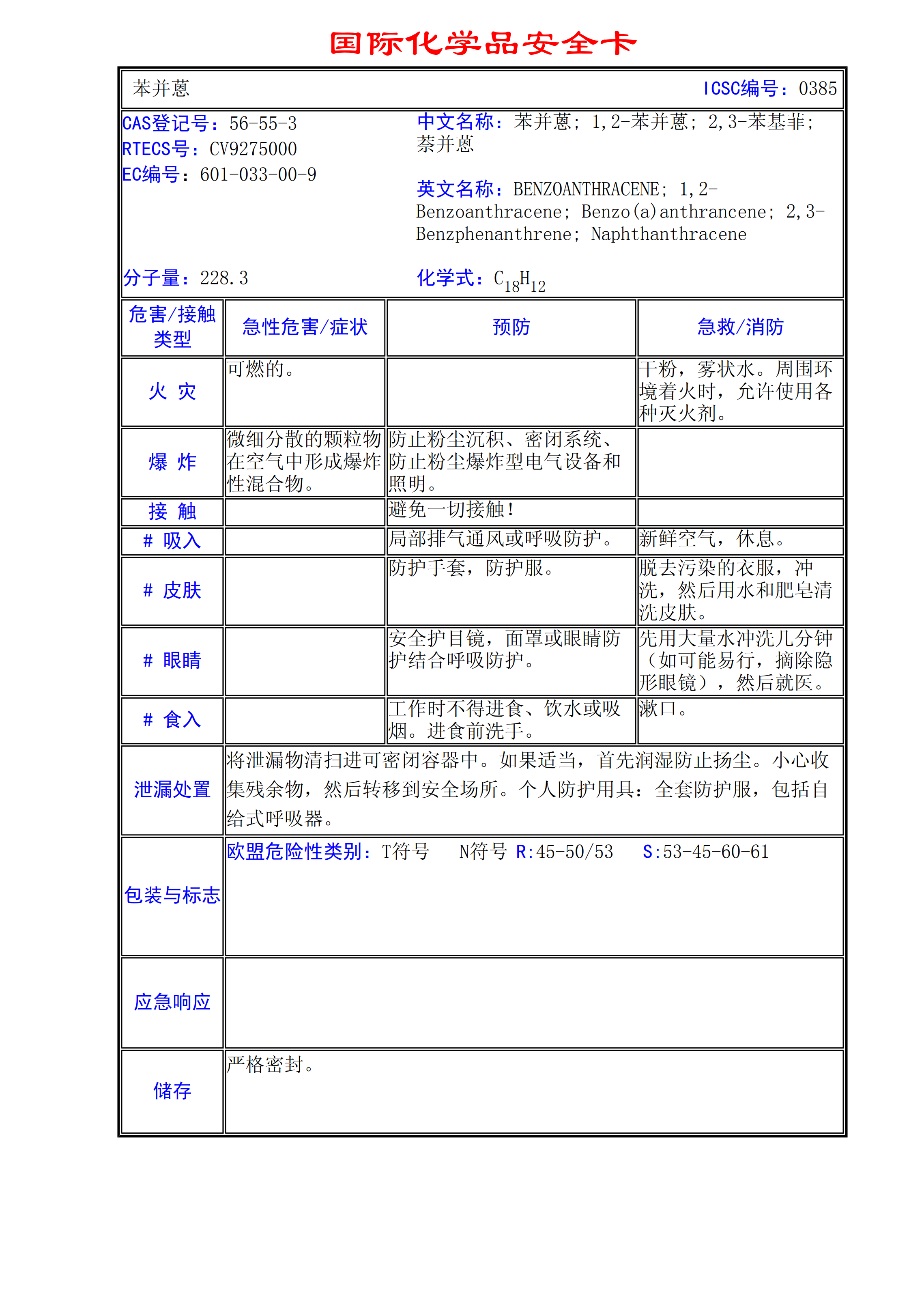 苯并蒽MSDS