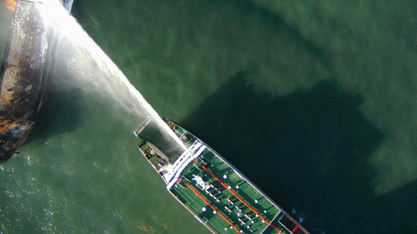 按照黃明書記批示要求,孫華山副部長在應急管理部21號辦公區會商大廳調度指導救援。國家安全生產應急救援中心全程跟蹤事故救援情況,調派國家危險化學品應急救援舟山隊緊急出動參與處置。836分,舟山隊“中化應急號”救援船攜帶消防泡沫,隨船24名救援隊員緊急出動,全速駛向事故現場參與救援。根據現場指揮部指令,211005分,擔負主攻任務的舟山隊在海事、消防等救援力量協同支持下發起總攻,1055分,油船明火全部撲滅。舟山隊繼續對船體實施泡沫覆蓋冷卻,防止復燃。
