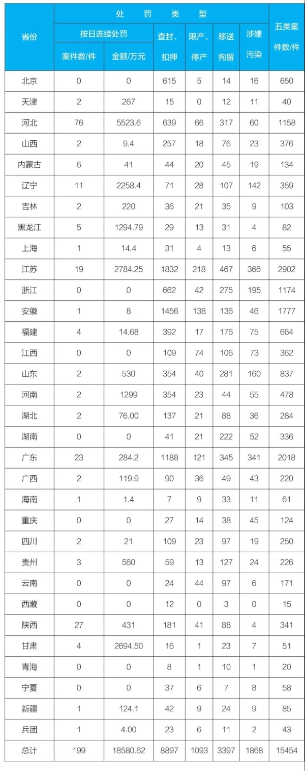 近日,生態環境部向媒體通報各地2021年1-12月環境行政處罰案件與《環境保護法》配套辦法的執行情況。